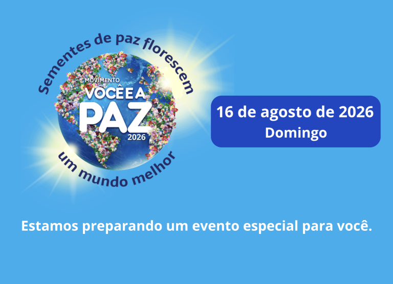 Inspirados pelo exemplo e legado de Divaldo Pereira Franco, fundador do Movimento Você e a Paz, vamos realizar uma edição especial do evento em Amparo/SP, reafirmando nosso compromisso com a construção de um mundo mais pacífico, justo e fraterno. Trabalhamos, com muito amor, por esse movimento que nos impulsiona na direção de uma sociedade mais consciente e harmoniosa, por meio de ações que inspirem a transformação interior e social. O Movimento Você e a Paz é uma iniciativa da Mansão do Caminho, instituição localizada em Salvador/BA. De caráter ecumênico e sem vínculos políticos, o movimento foi idealizado por Divaldo Franco e já alcançou mais de 75 cidades em 14 países, promovendo reflexões e atitudes que geram mudanças reais na vida das pessoas e da sociedade. Convidamos você a fazer parte desta jornada, para que seja um embaixador da paz onde estiver plantado. Juntos, podemos manter viva essa corrente do bem e continuar espalhando luz e esperança por onde passarmos.